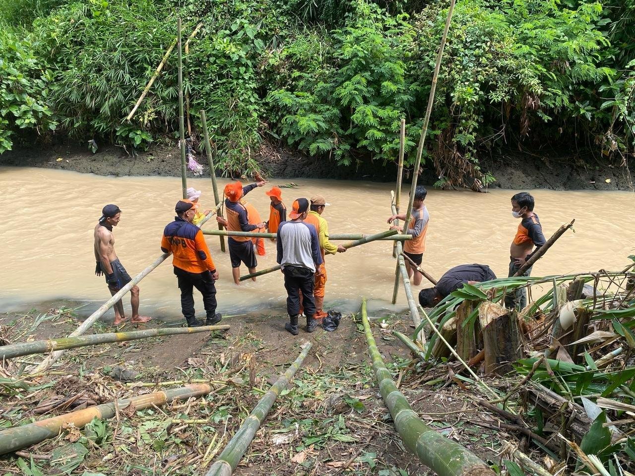 Tim SATGAS BPBD Provinsi Banten dan Tim dari PERKIN bekerja sama untuk melakukan pembuatan MCK di alur kali Cibanten.