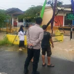 WILISPOST.COM, Serkot - Kapolsek Kramatwatu Polresta Serkot bersama anggotanya memantau genangan air di Perumahan Puri Cilegon, Desa Margasana, Kecamatan Kramatwatu pada Jumat (6/3/2026). Ketinggian air yang menggenang mencapai kurang lebih 50 sentimeter.
